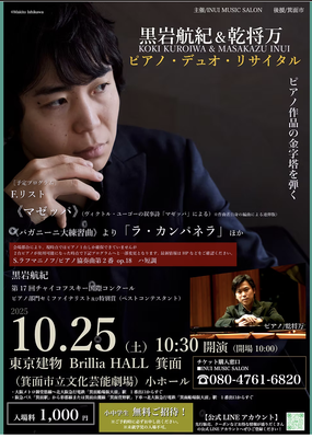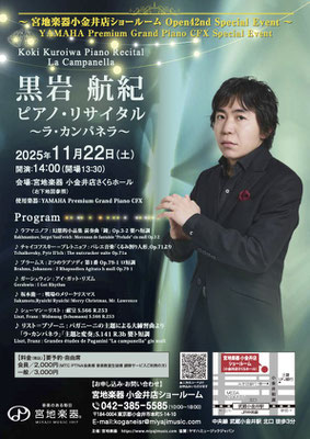 主催サイトからのお申込フォームhttps://www.miyajimusic.com/koganeishop/event/202511_koki_kuroiwa/