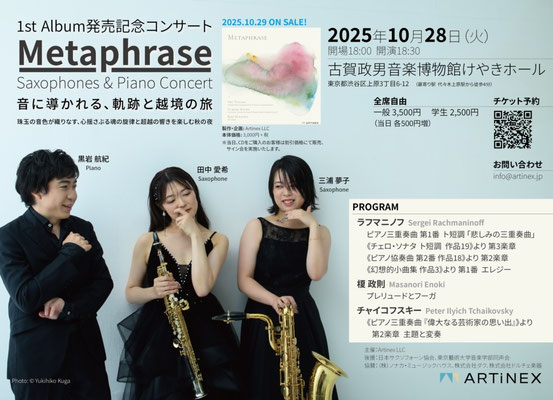 出演:野田枝里(Fl.)/土岐光秀(Sax.)/黒岩航紀(Pf.)